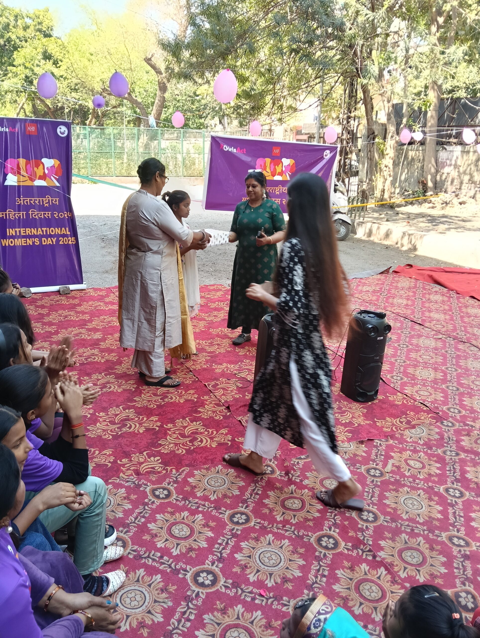 International Women’s Day 2025 was a grand celebration at the Ek Jeevan Hamari Prerana (EJHP) office in Bharat Nagar, Delhi. The Girls Act-Kanya Kranti Leaders had been working tirelessly for three weeks to organize the event, and it was clear that their efforts had paid off. On March 8th, a vibrant gathering of 150 women, girls, and children came together to celebrate the spirit of womanhood.
