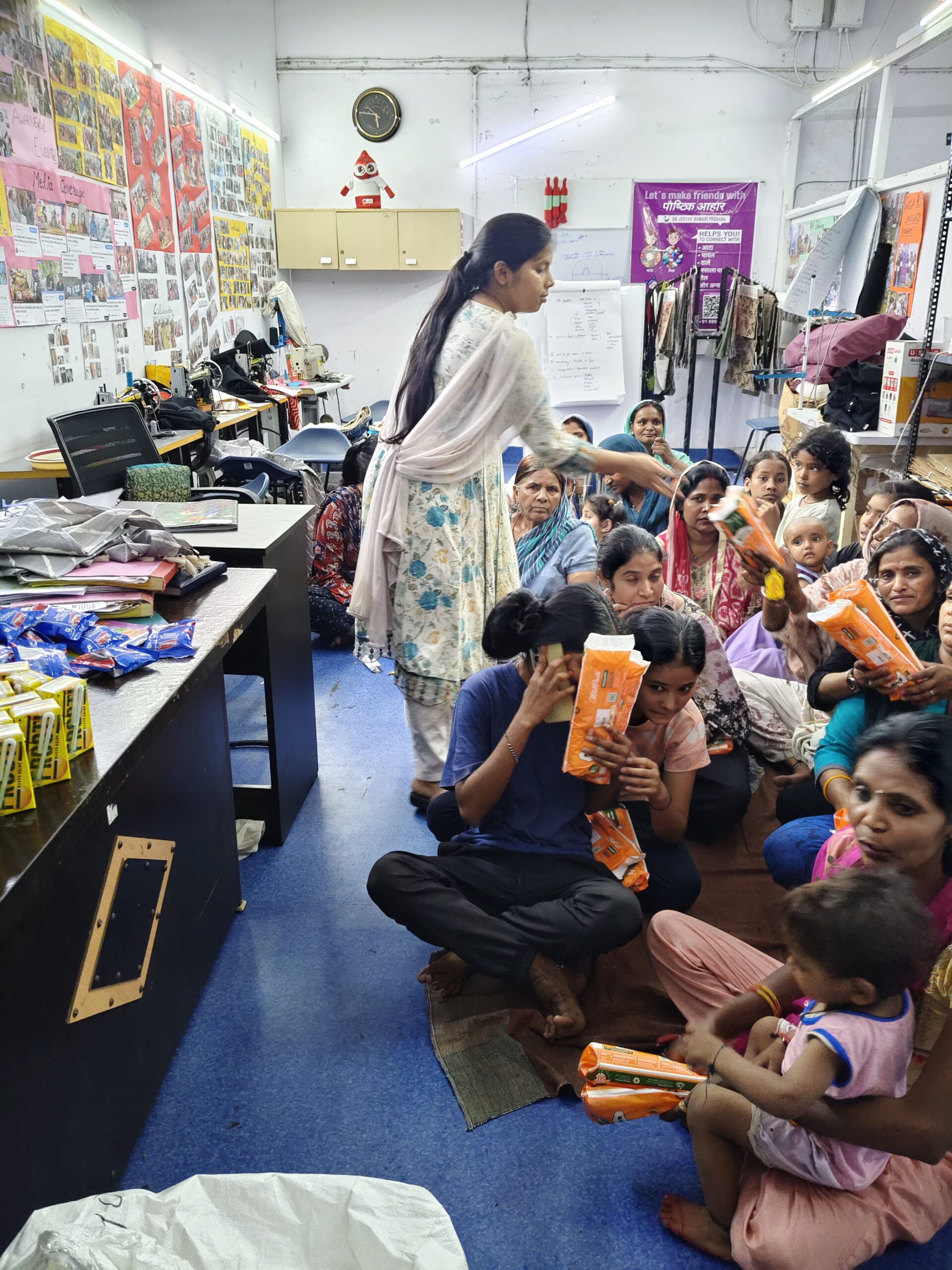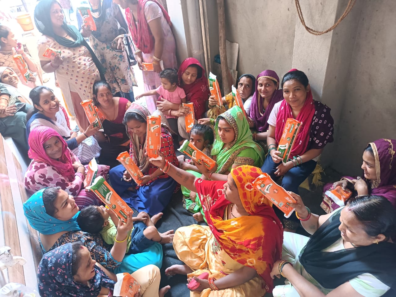 We started free distribution of menstrual pads in 2023, along with hygiene sessions, and it opened our eyes to the reality on the ground. During our survey, we found that out of 100 women, 20 were still using cloth, while 80 used pads. We understand using cloth could be an option, but the issue is they aren’t maintaining hygiene in using it. They use old sarees or dupattas, never thinking about the fabric’s quality, which can lead to health issues.